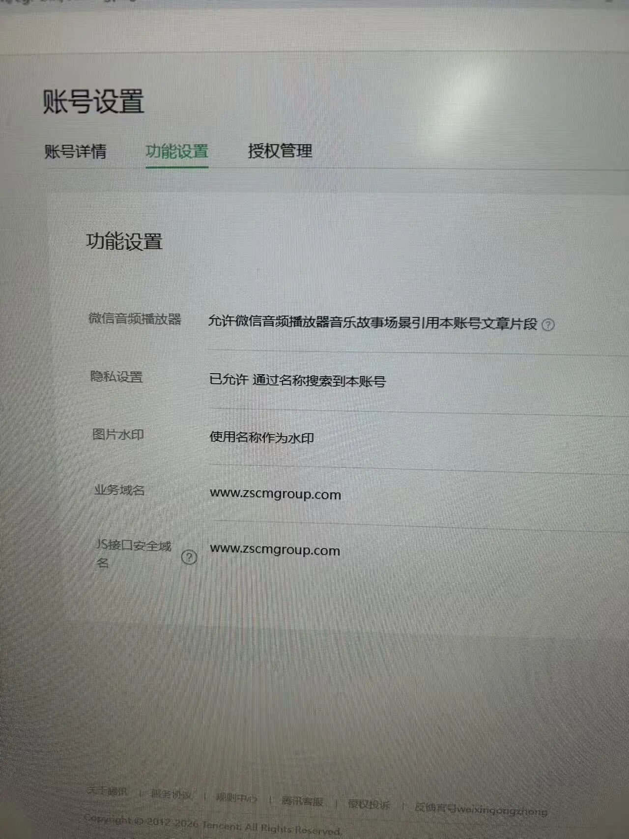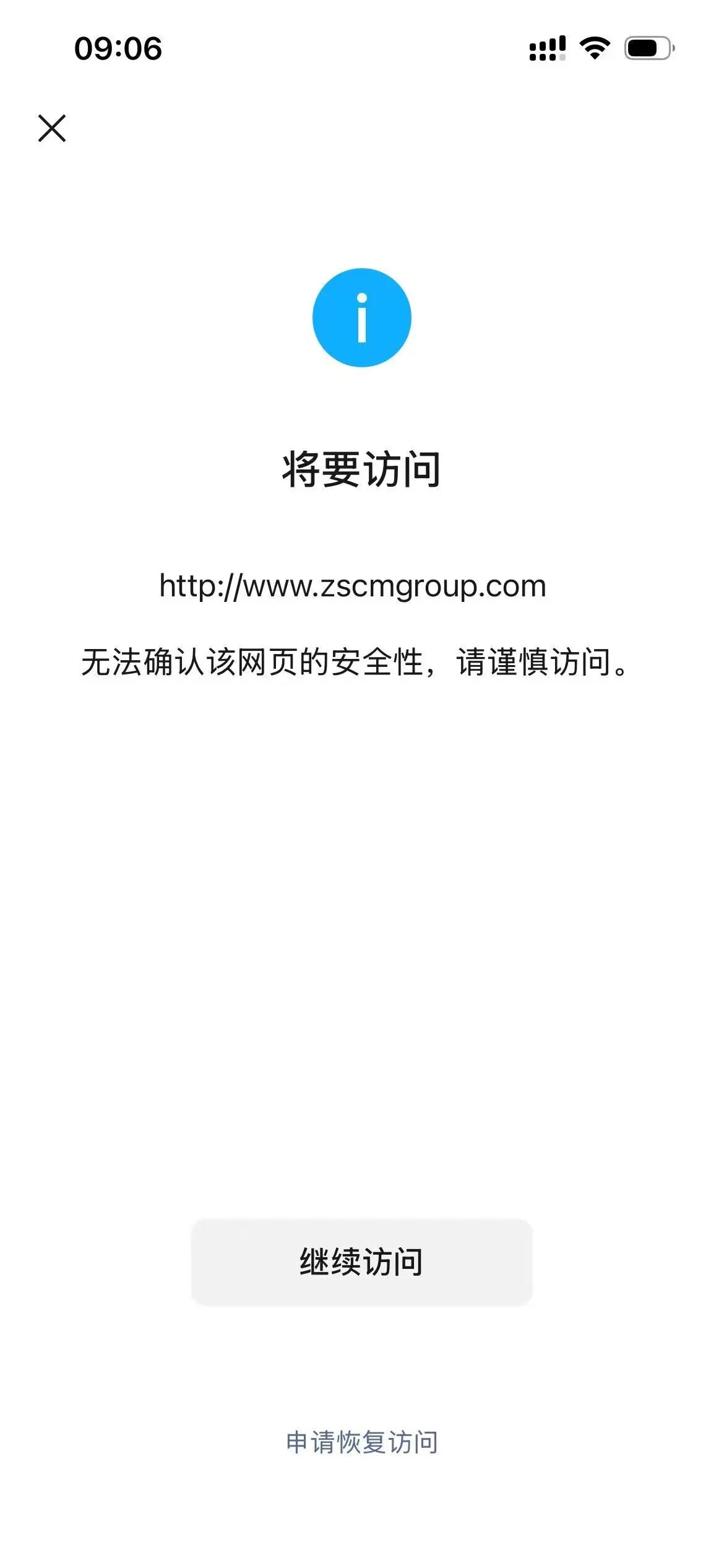 www.zscmgroup.com是我们公司官网域名,已经通过了工信部备案,但是在微信中打开还是提示安全性问题,按照提示已经申请过几次恢复访问,而且在公众号的账号设置-功能设置-业务域名中也提交了,但还是没有效果