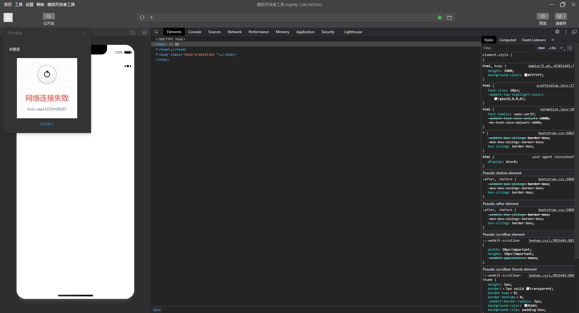 扫码登录微信开发工具提示:Error: read ECONNRESET?