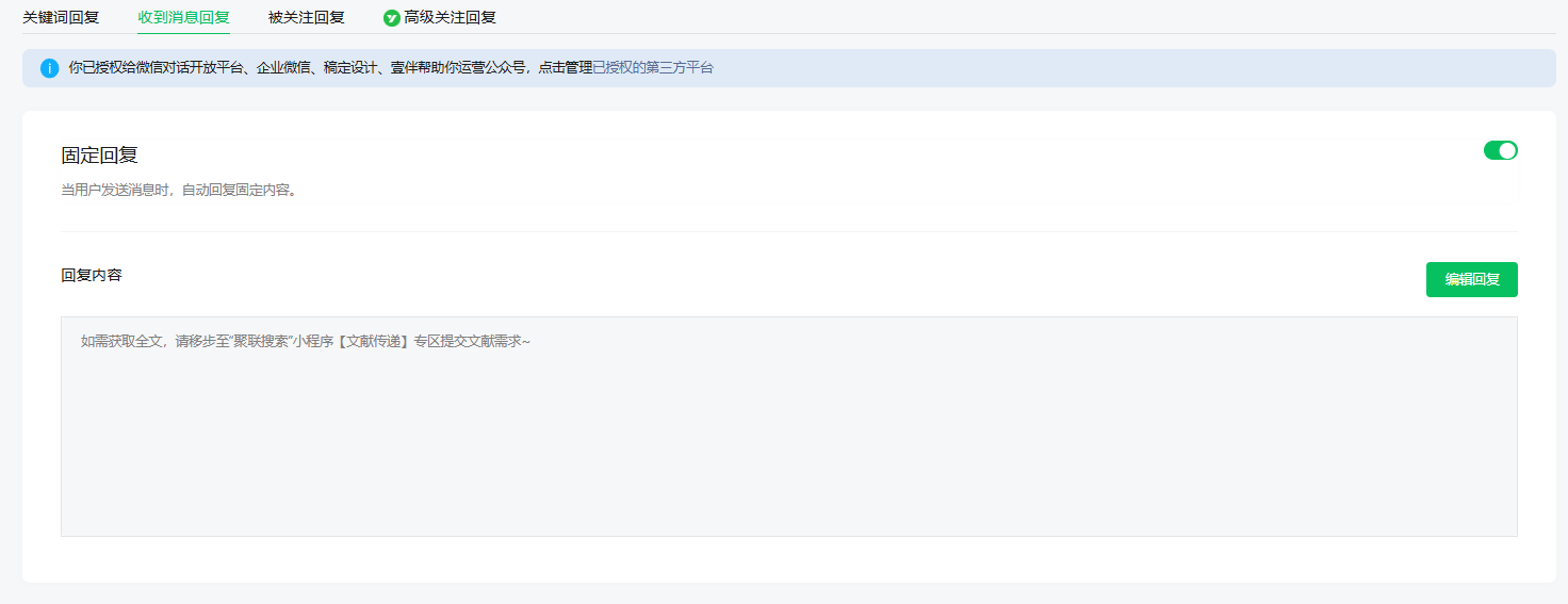 后台设置了“收到消息回复”,但是实际上收到消息后并没有自动回复,每次还是人工在回复