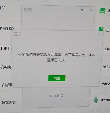 你好,提示“登录环境异常,本次登录失效,请重新登录”的问题,重新扫码登录即可,出现该提示一般是由于微信帐号被其它用户投诉导致(如:涉嫌频繁发送营销类广告骚扰信息等,请遵守微信使用规则,并规范个人行为,谢谢!)