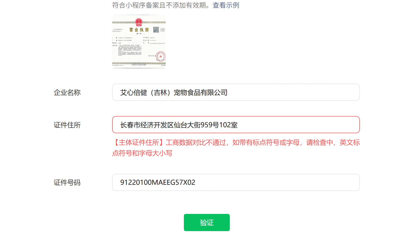三张截图如上,在进行小程序备案的时候提示与工商数据不一致,核对了一下营业执照、国家信息公示系统以及填写的信息皆一致,不知道问题出现在哪里@小程序运营专员-PZY @社区技术运营专员 @社区技术运营专员--许涛 想辛苦帮看一下,确实找不到问题点