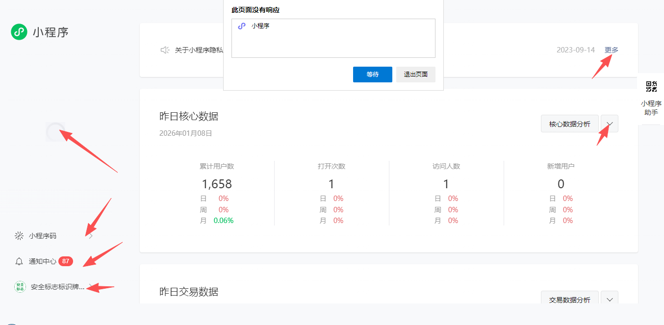 从多台电脑多种IE多次通过微信公众平台扫码登录小程序管理页面后卡顿异常,不能正常使用管理页面,此现象已经好多天,目前无法操作小程序的管理工作,请相关工作人员尽快协助解决为盼!!!