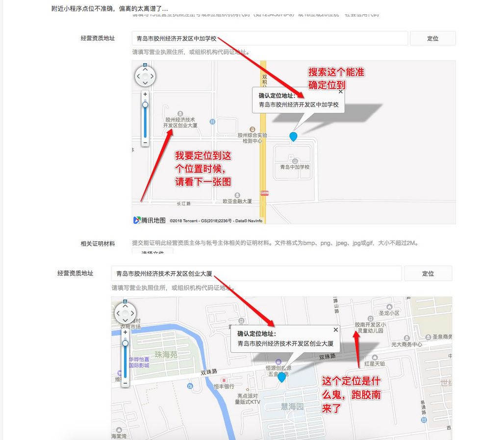 请问附近小程序位置定位不准的问题什么时候有回复,腾讯地图是准的,小程序后台设置的时候定位不到。