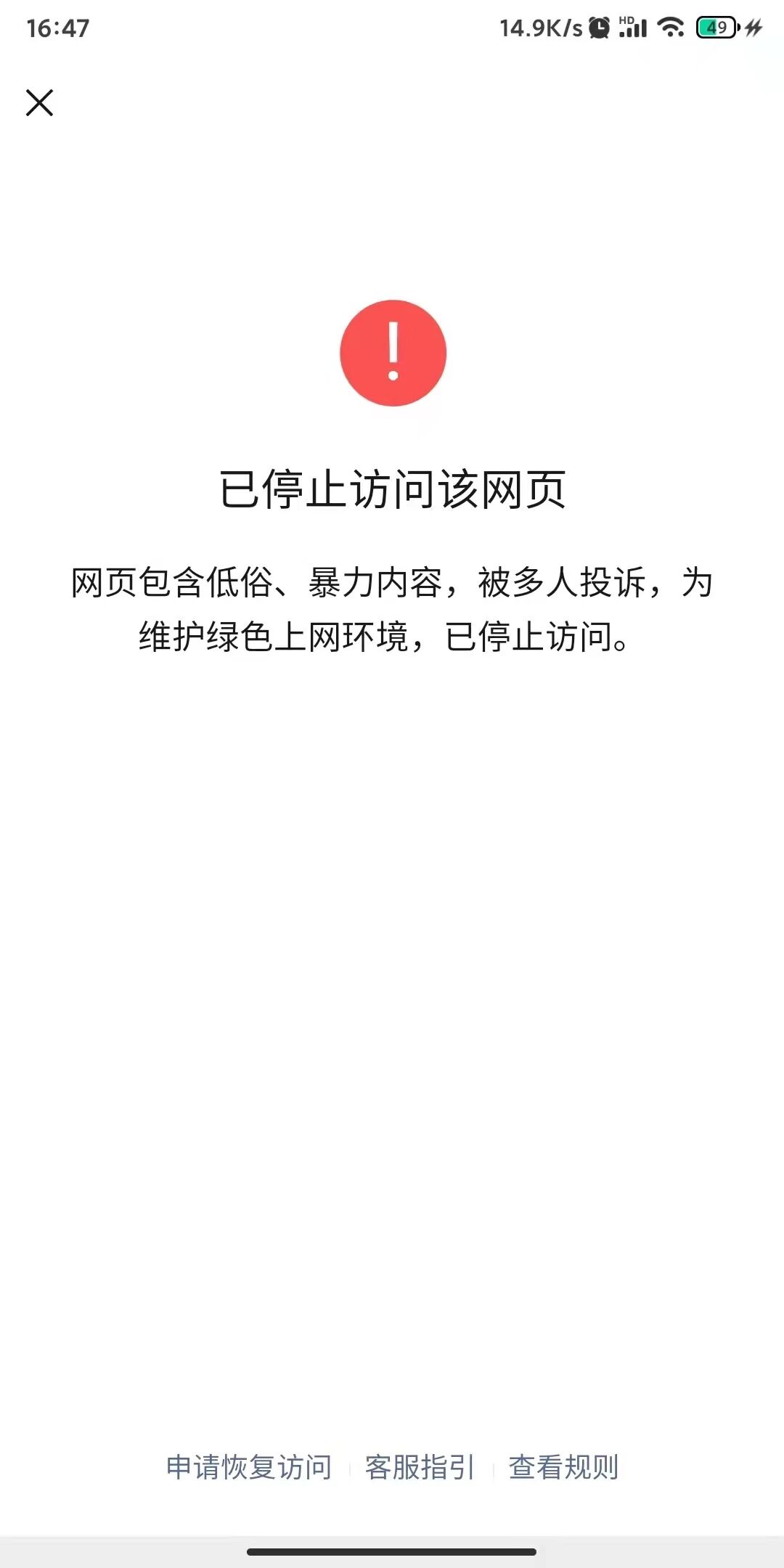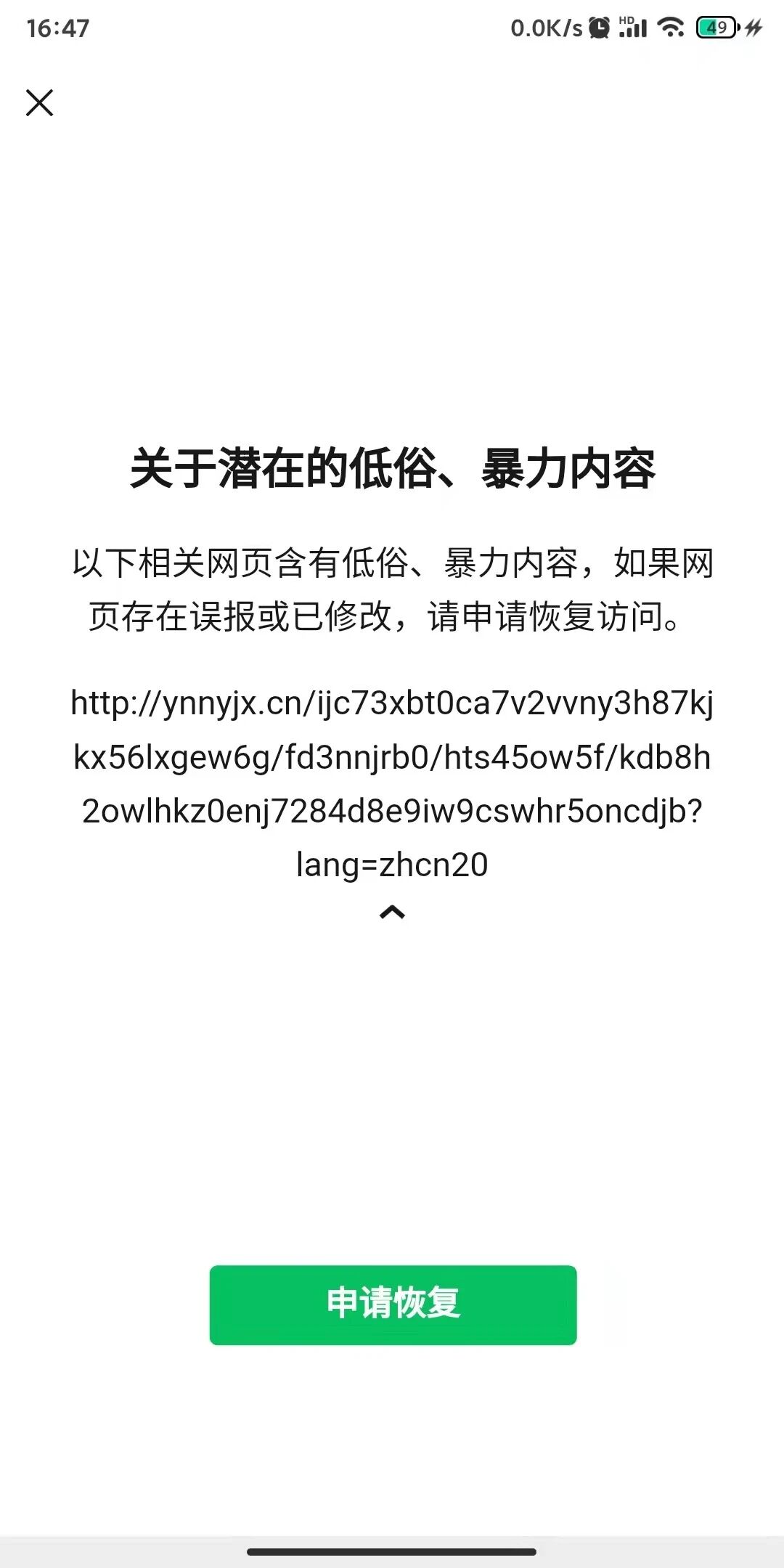 刚解析的域名,微信打开就提示停止访问,说是存在低俗暴力内容页面,可以站内根本不存在提示的链接页面,不清楚具体是哪里的问题?麻烦帮忙处理一下!