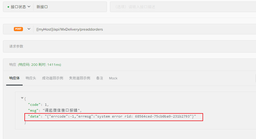 对接同城配送的查询快递费的接口返回系统清除错误:{"errcode":-1,"errmsg":"system error rid: 6854f559-5094c38f-6b5770c2"}是什么原因?