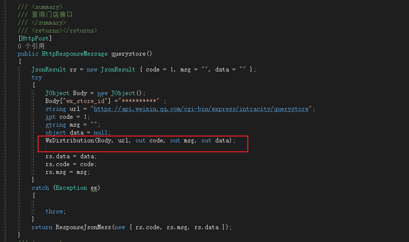 但是调用查询门店接口,是可以正常返回的https://api.weixin.qq.com/cgi-bin/express/intracity/querystoredd'