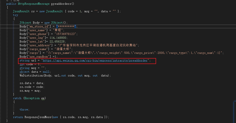 接口“https://api.weixin.qq.com/cgi-bin/express/intracity/preaddorder”