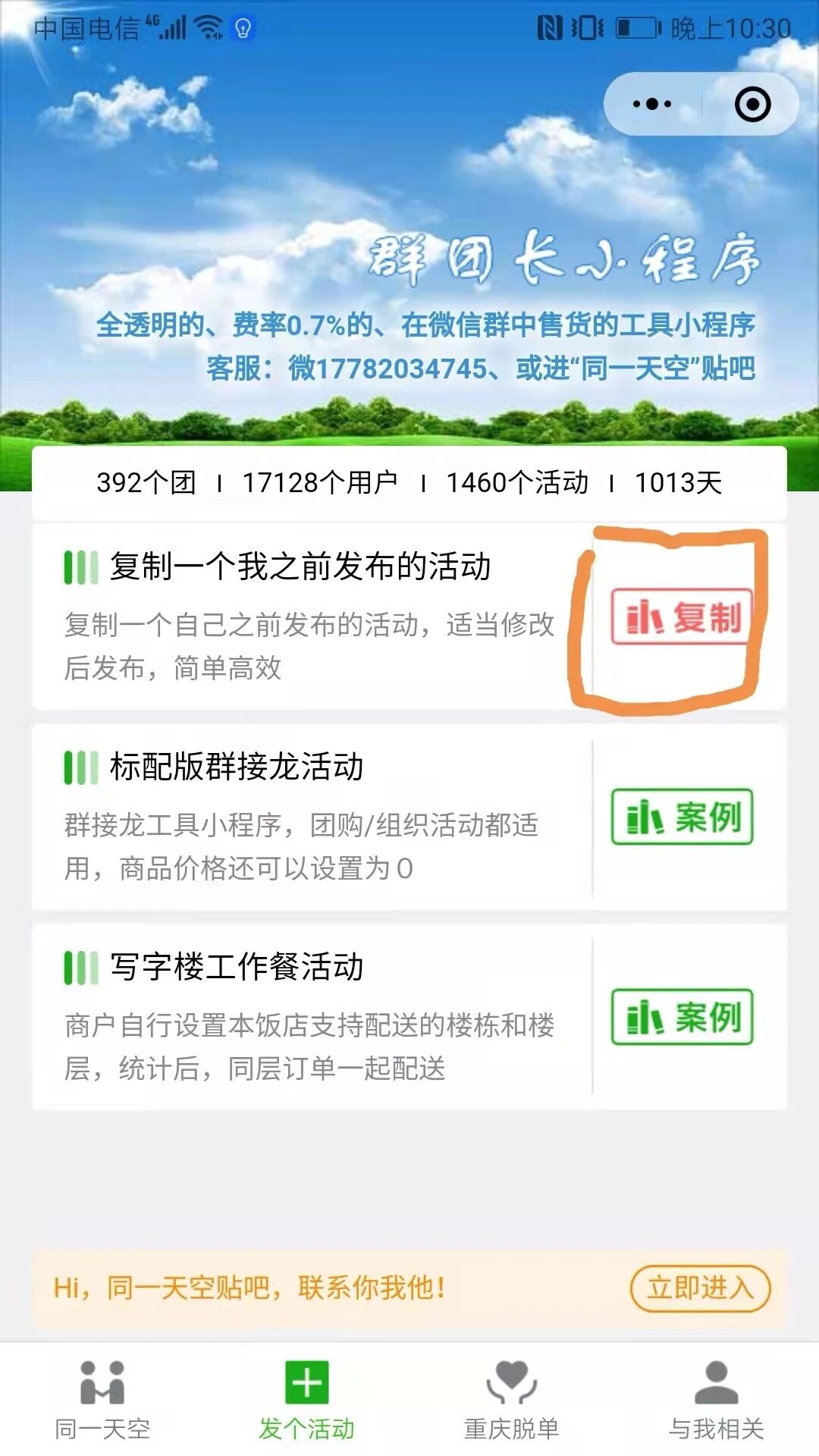 第二步,复制第一步发布的活动(进入下面第三张图后先不要点发布活动)