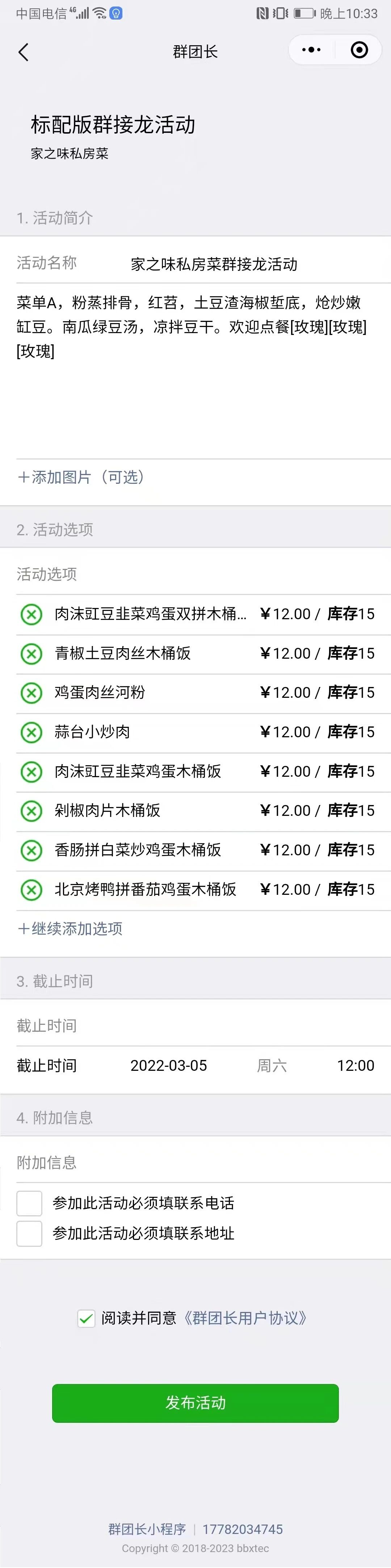 第一步,在“群团长”小程序发布一个活动,发布活动中的选项大于3个