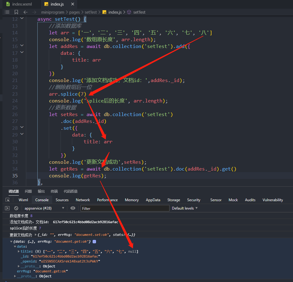let getRes = await db.collection('setTest').doc(that.data.docId).get()