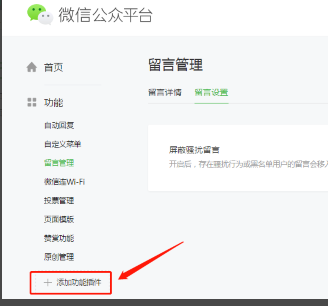 为什么我的公众平台管理的功能模块,没有"+增加功能插件"?