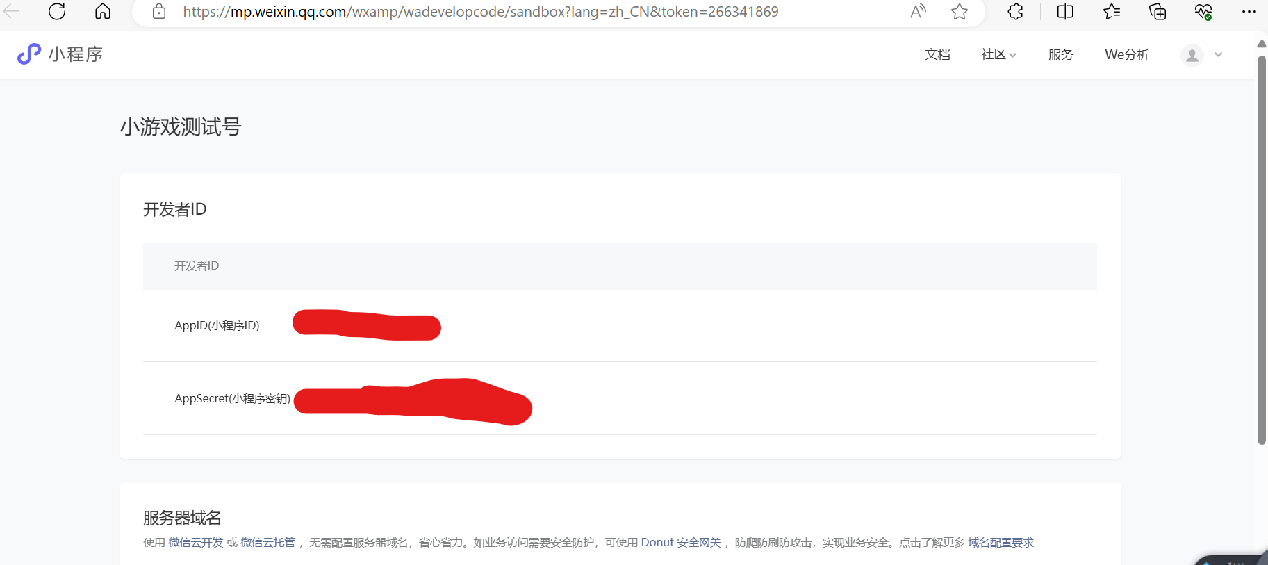 你这个是测试号,没有其他操作,在MP后台:https://mp.weixin.qq.com/,重新注册一个小程序并微信认证后才有其他设置选项
