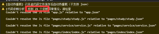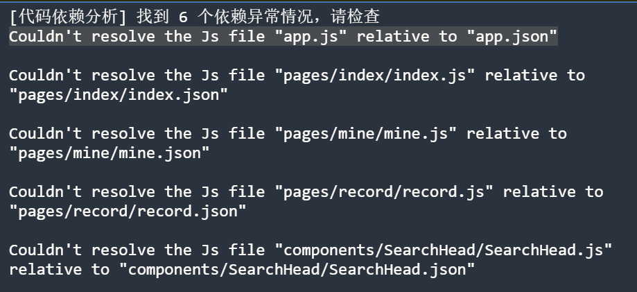 这个猜测是 "代码依赖分析"功能给输出的,因为项目使用的是ts开发,并不会在开发目录下生成对应的js,这个分析功能发现页面没有对应的js就爆出警告了