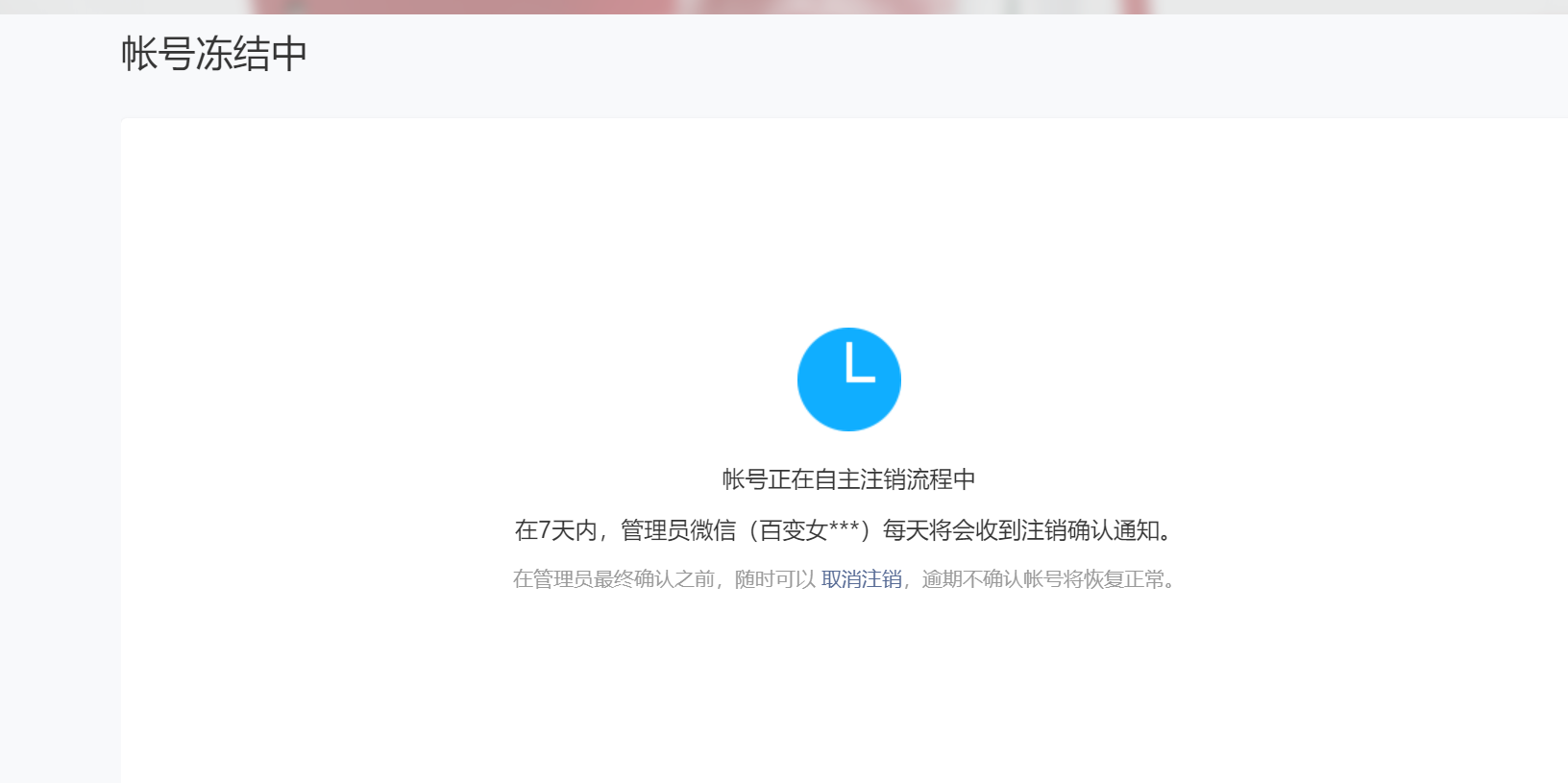 是这样的,我帮老板注销两个微信小商店,她那边没有任何通知 连注销通知都没有,他已经关注了微信公众平台,我这边打开看已经再自主注销了,我是12.1日上午九点多注销的,明明写着每天都会提醒呀,她那边什么也没有,这是怎么回事呢 她的微信号:iqueene 邮箱1174596535@qq.com