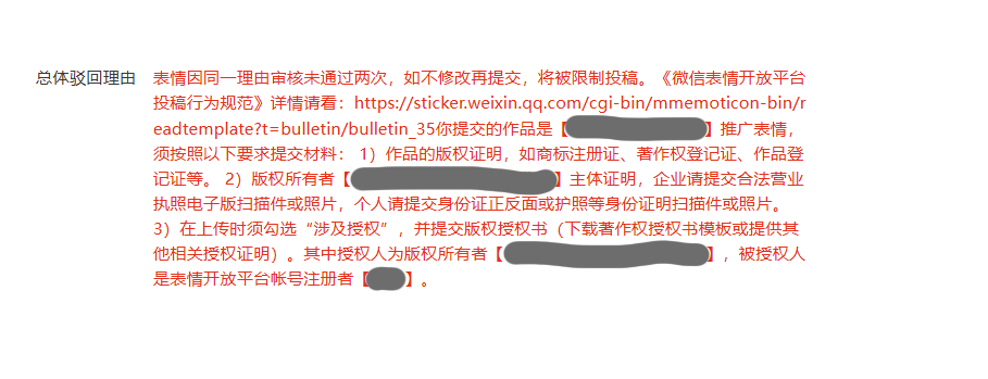 我想咨询一下,我为企业上传表情包,不小心注册成了个人号,上传之后审核没有通过(不通过原因如图),显示需要企业提供授权证明给个人以及作品的版权证明,但是我看认证成企业号会更方便一点,如果我将个人号升级成企业号,是否能解决这个问题?