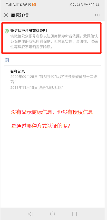 请问这类的商标认证,腾讯是如何进行审核通过,还不显示商标授权的相关信息的呢?