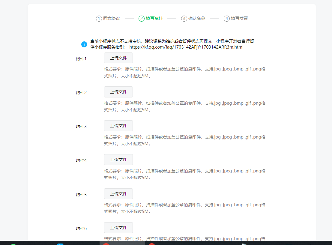 我想问下,我们再次点击提交补充资料按钮,页面跳转后,有10个附件要我上传,但是都没写需要上传什么内容,这一步是要上传什么东西?