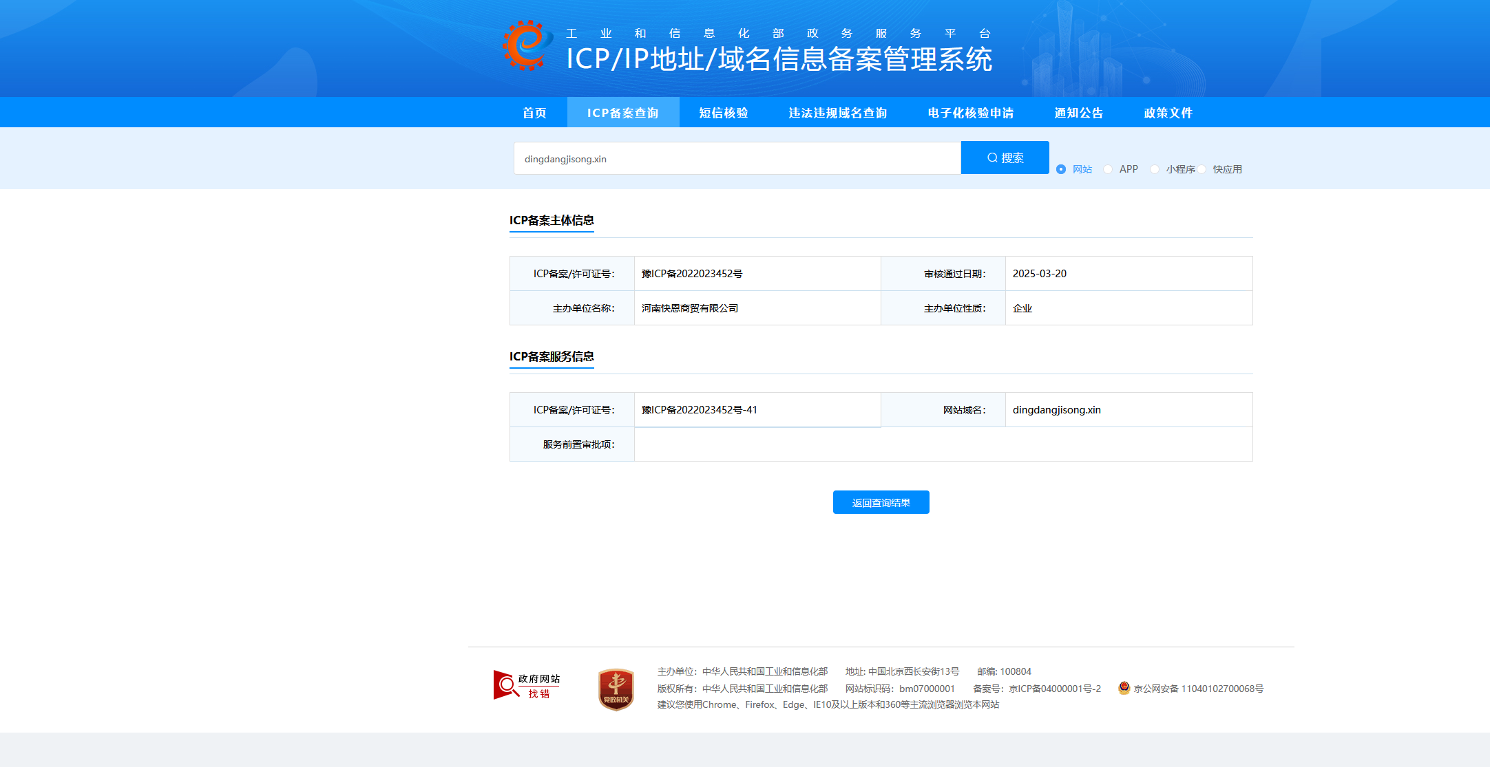 域名已备案