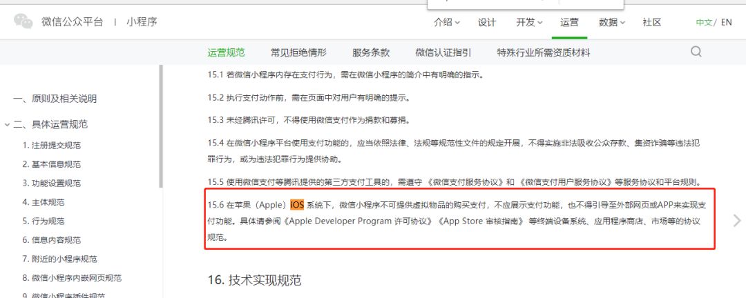 微信公众平台运营规范对iOS端微信支付规定如下: