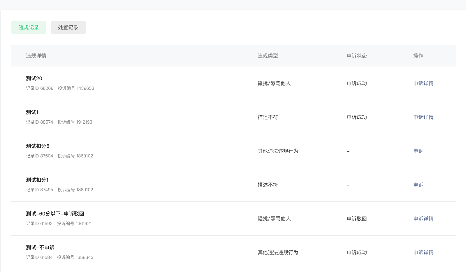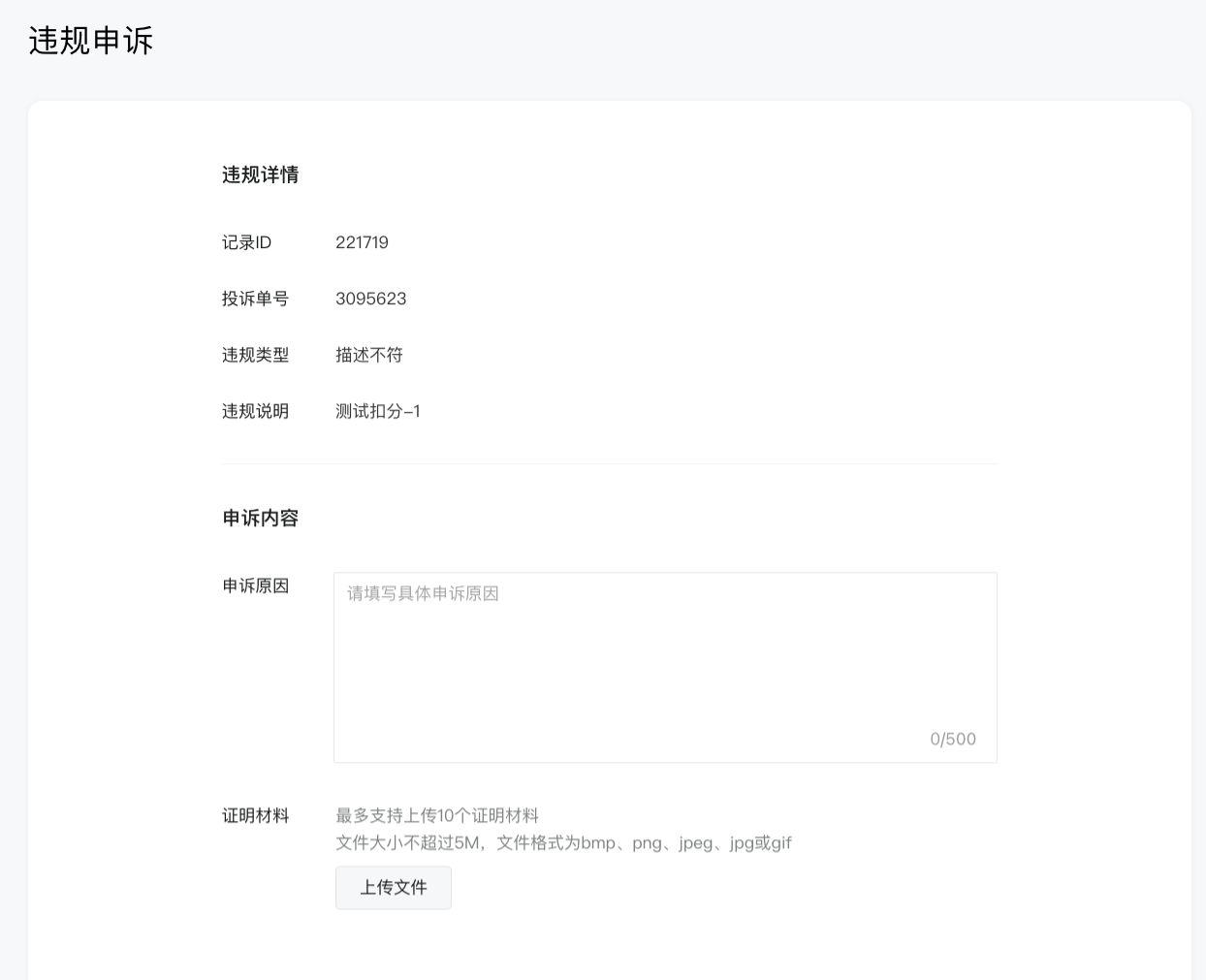 开发者可就平台作出的扣分处理享有一次申诉机会。如开发者不认可平台作出的违规行为认定和扣分处理,可在收到扣分处理通知的7日内在违规记录列表中针对扣分记录发起申诉。