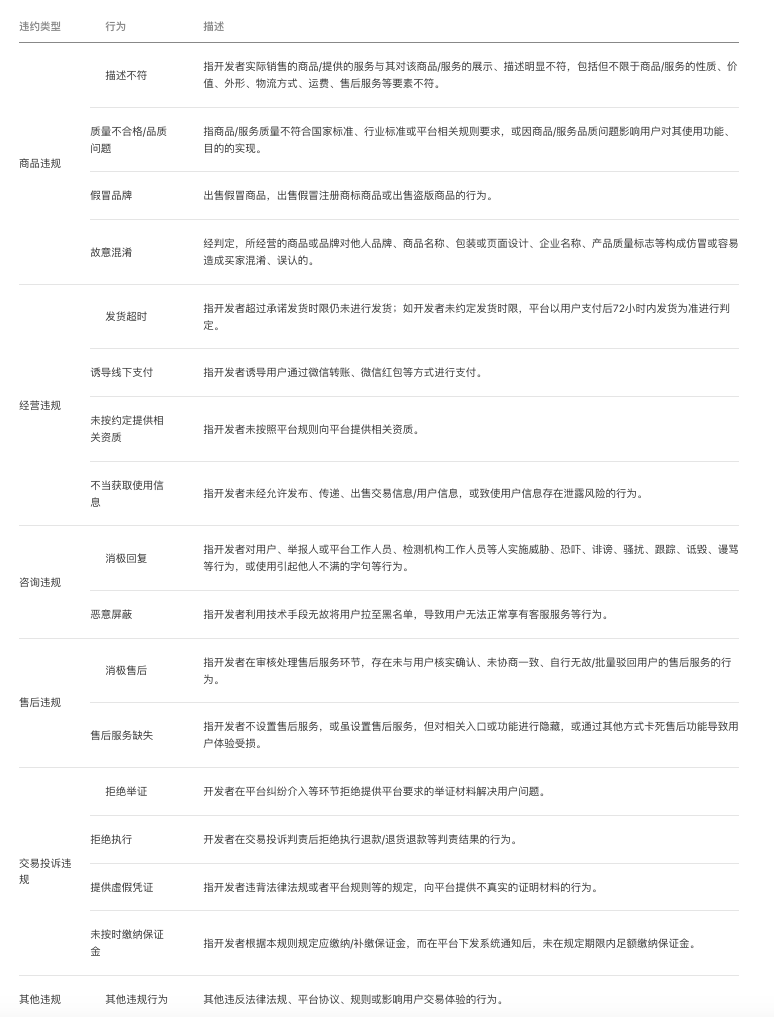 小程序交易体验分是为保障小程序用户的交易体验,促进开发者向用户提供更好的服务,帮助开发者更好的评估自身服务水平的机制。平台将对开发者在其小程序的违规行为进行判定,根据违规行为的严重程度对该小程序扣减不同分值的交易体验分,并在小程序交易体验分扣减至相应节点时,对开发者采取相应违规处理措施。