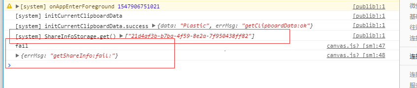 //转发 onShareAppMessage: function () { return { title: '抽奖大转盘', path: '/pages/canvas/canvas', success: function (res) { // 转发成功 var shareTickets = res.shareTickets; var shareTicket = shareTickets; wx.getShareInfo({ shareTicket: shareTicket, success: function (res) { console.log('success'); console.log(res); //console.log(res); wx.showToast({ title: '转发成功', duration: 5000 }) }, fail: function (res) { console.log('fail'); console.log(res); wx.showToast({ title: 'fail:' + res.errMsg, duration: 5000 }) } }); }, fail: function (res) { // 转发失败 } } }, |