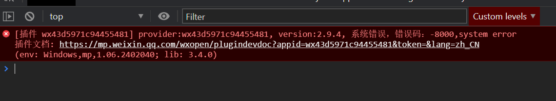 [插件 wx43d5971c94455481] provider:wx43d5971c94455481, version:2.9.4, 系统错误,错误码:-8000,system error