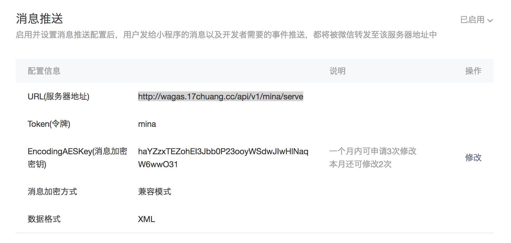 在小程序进入客服,微信没有把客服消息推送到我指定的服务器地址,我已经在后台开启消息推动,并配置了地址