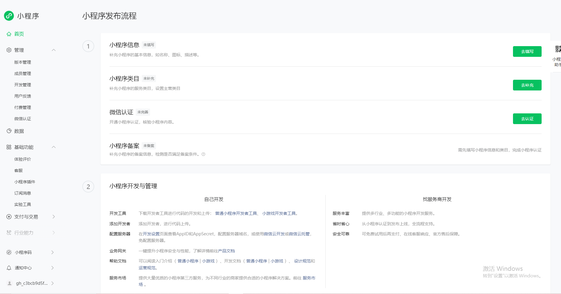 注册小程序绑定了公司的邮箱,但是领导说不做小程序了,改成公众号,继续使用公司邮箱,但是我没有找到更改邮箱绑定和注销邮箱的页面,上网搜说是在设置里,我现在的页面连设置都没有