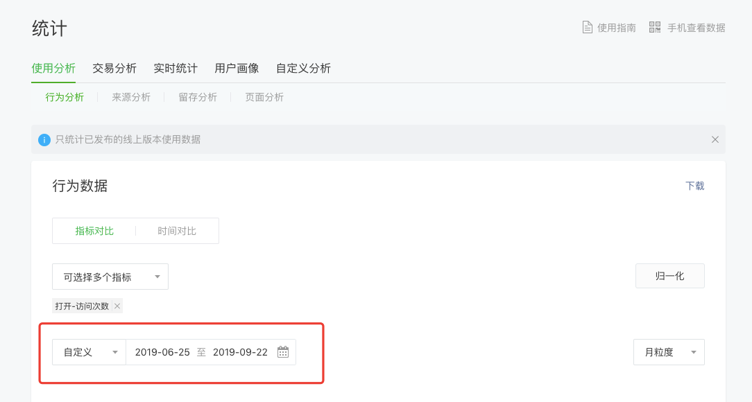 怎么才能查看三个月之前、甚至去年的行为数据?