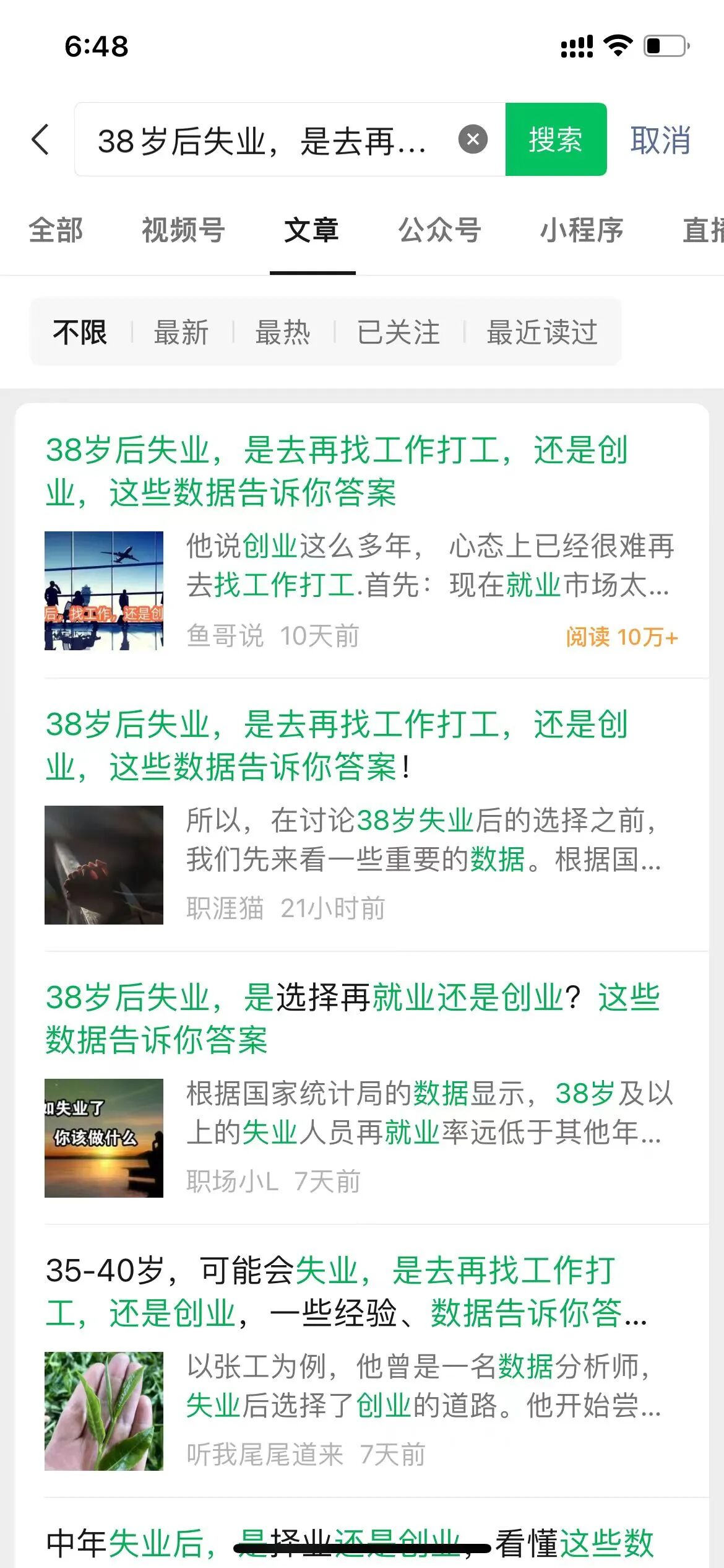 示例文章:《30岁后失业,是去现找工作打工,还是创业,这些数据告诉你答案》