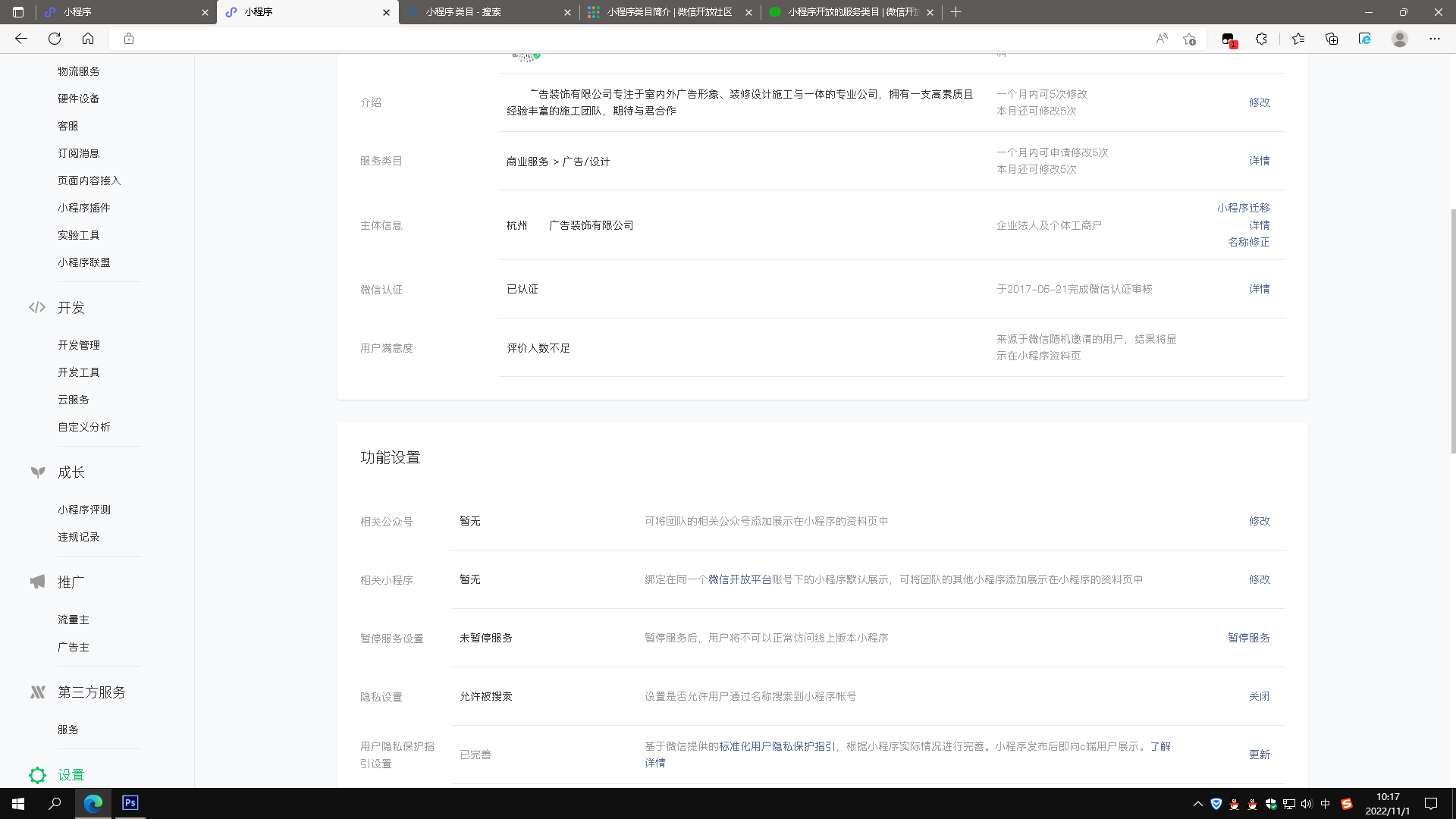 如果是小程序类目就选商业服务,广告设计
