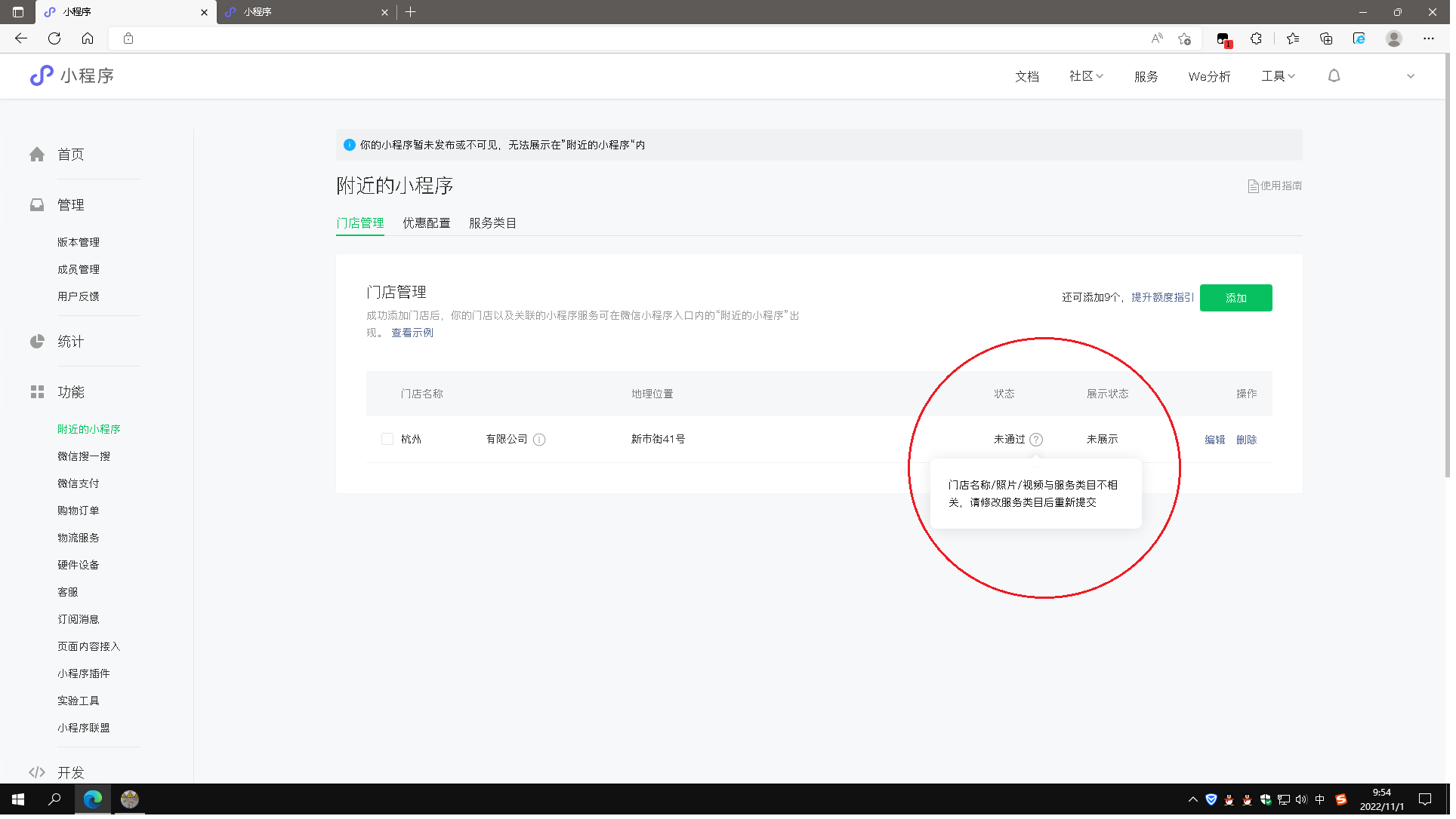 你好,请提供下对应小程序的appid进一步查实下呢