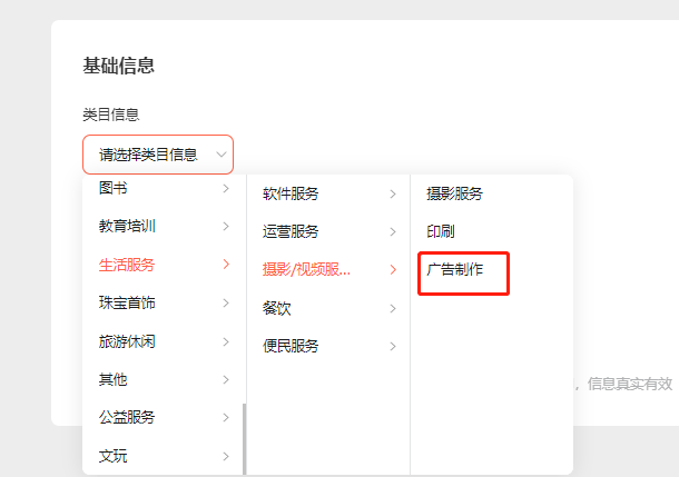 如果是小店类目就选广告制作