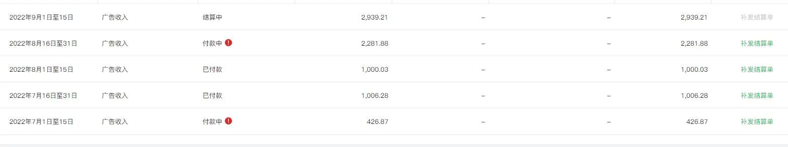 情况:7月1日-15日帐号错了,修改后这个款一直没到帐,7月16日-8月15日都是正常的,8月16日-31日显示付款中,然后9月1日-15日的帐单都发到我邮箱了,但是我收到的款是8月16-31日的款,9月1日到15日的到现在都还在结算中,8月16-31日显示要我修改卡号(但是这个款已结算),是怎么回事?