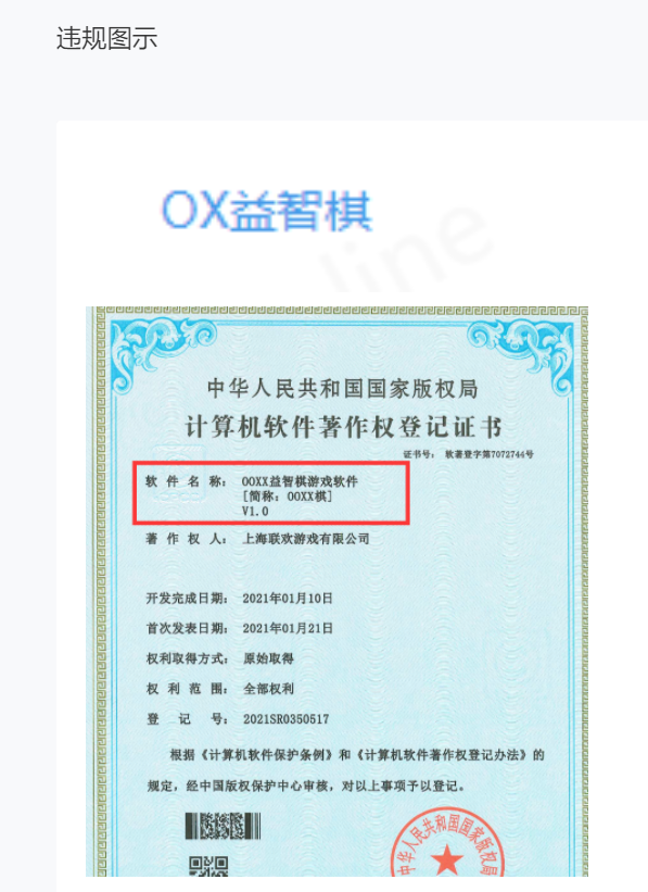 《OX益智棋》申请创意小游戏被拒,说和软著名字不一致,软著名字是《OOXX益智棋》,可是微信小游戏起名的时候OOXX输不进去,好像被微信小游戏屏蔽了,但是软著名字是这个啊,请问怎么解决?