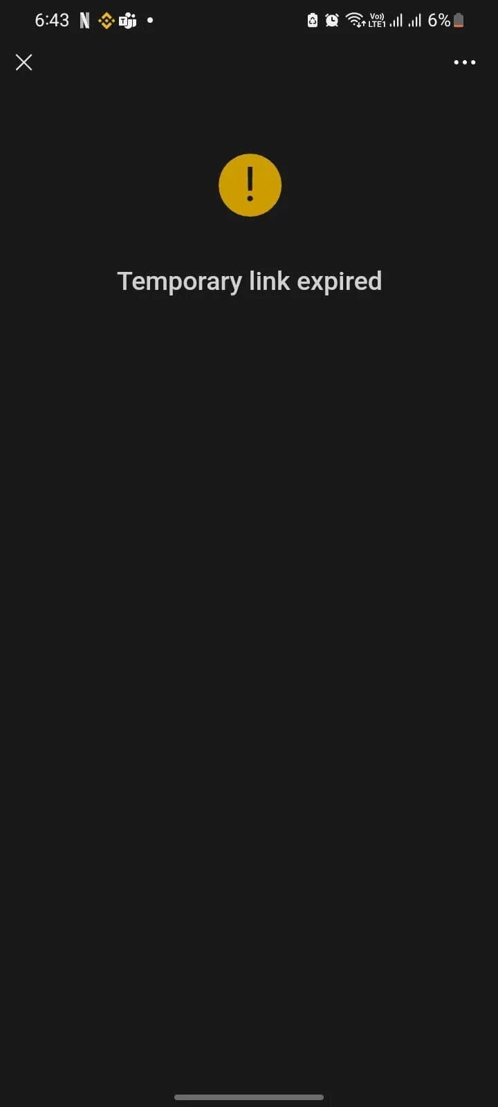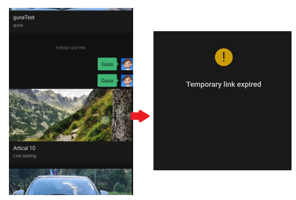 The message is sent without any issues, but after the user receives it, clicking on the message redirects them to the "Temporary Link Expired" page.