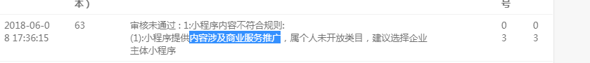 你好,经核实,小程序6月15日提审版本不涉及商业推广,已经审核通过,请留意站内信!