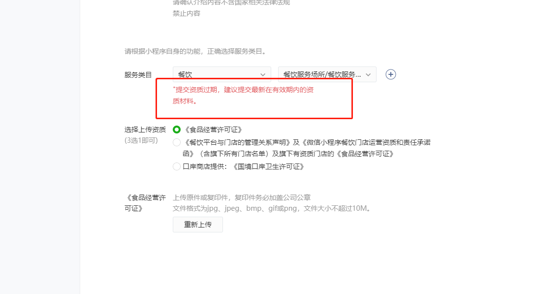 注册微信小程序显示资质过期未通过,但是去更新工作人员说今年7月已取消更新,怎么处理?