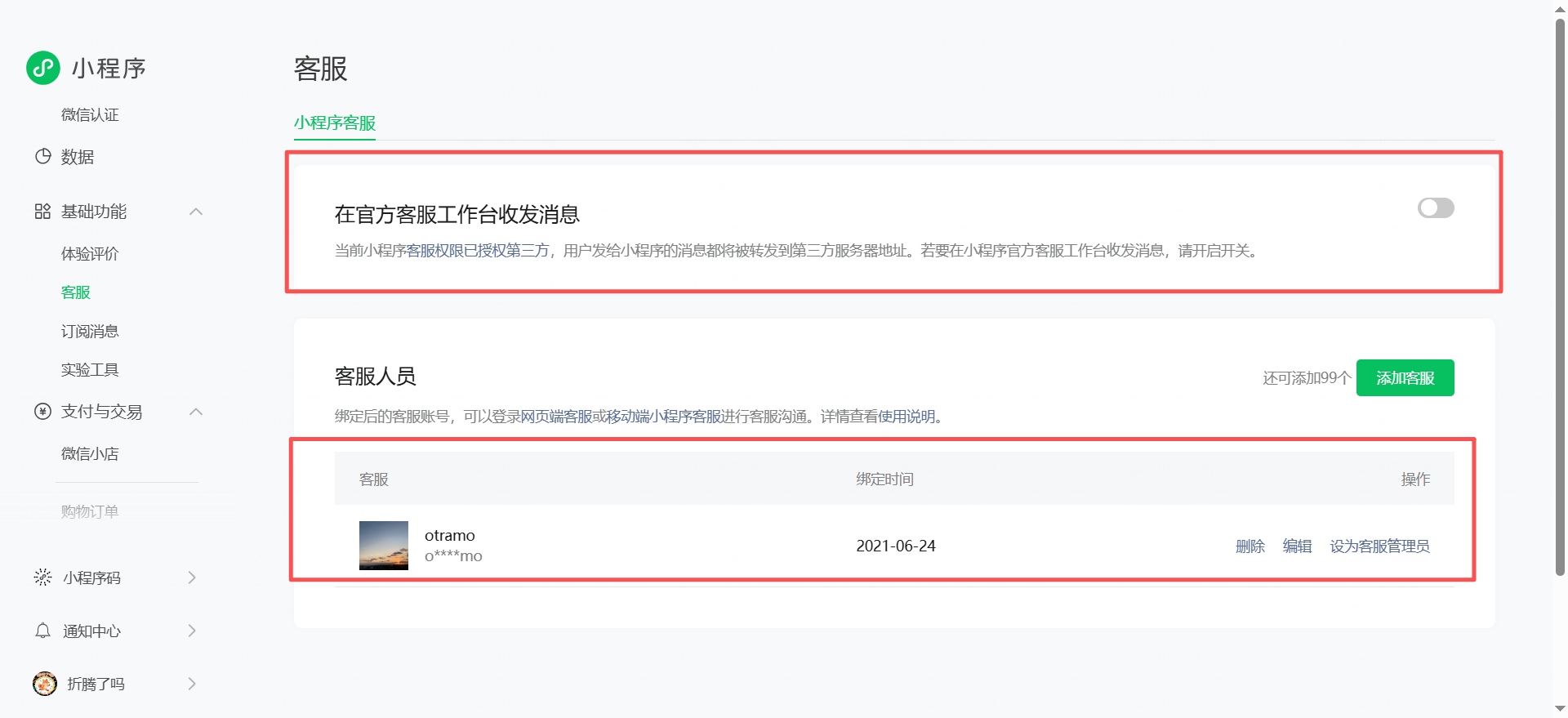开启并添加客服人员试试