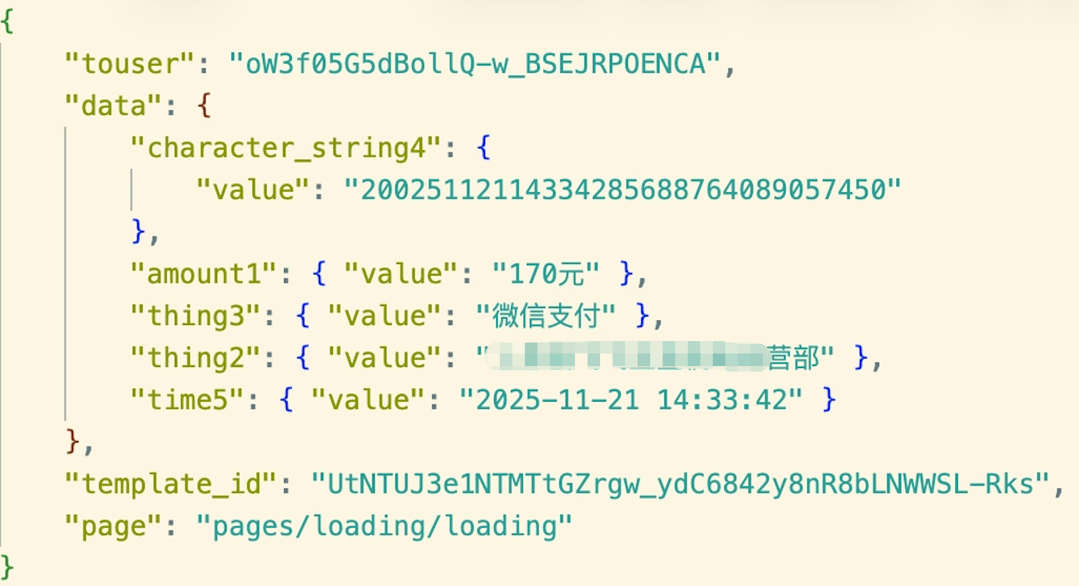 模板id(template_id): UtNTUJ3e1NTMTtGZrgw_ydC6842y8nR8bLNWWSL-Rks