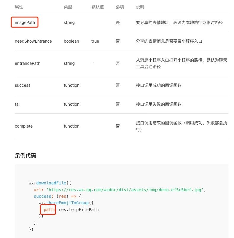 API地址:https://developers.weixin.qq.com/miniprogram/dev/api/chattool/wx.shareEmojiToGroup.html