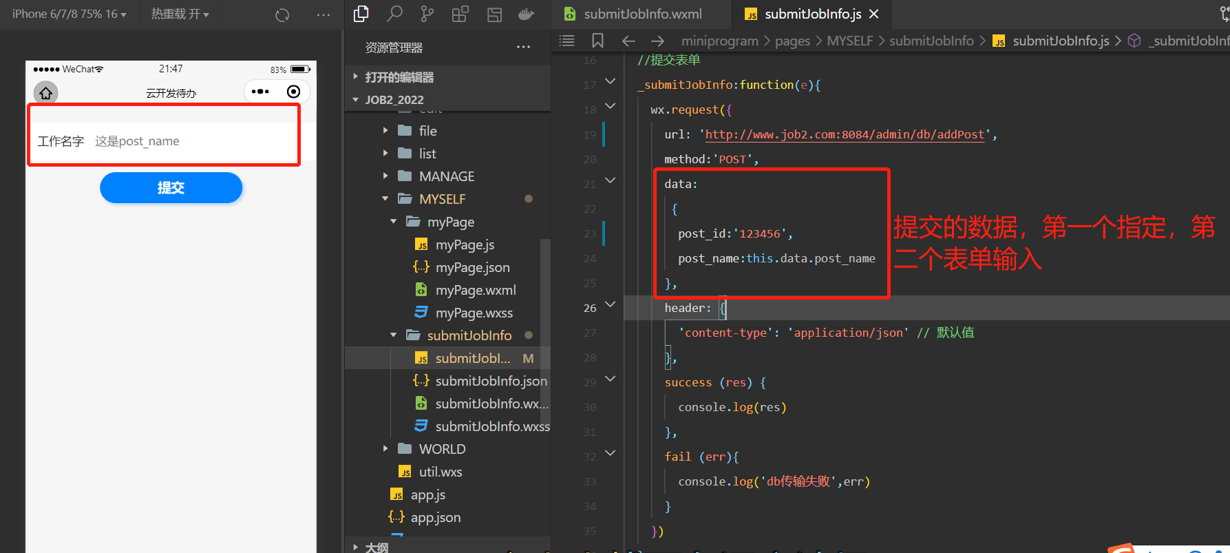 问题:已经可以在小程序上提交表单,将数据保存到MYSQL表中,但为什么还报错状态码500?