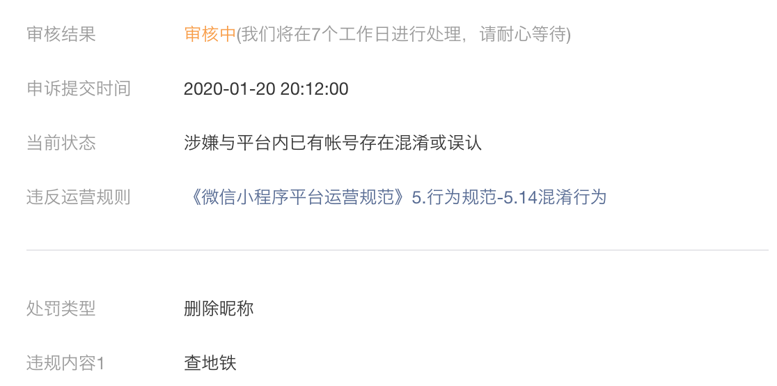 查地铁小程序于2017年1月9日上线,我们团队一直兢兢业业地手动维护着各个城市的数据,投入了巨大的时间,凝结了非常多的心血,2020真是个不好的开头,希望平台能还我们一个公道