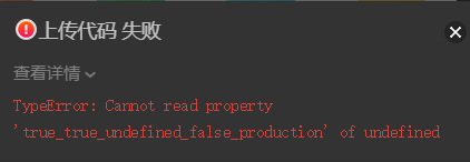 上传代码,开启上传前预编译,报错信息:TypeError: Cannot read property 'true_true_undefined_false_production' of undefined