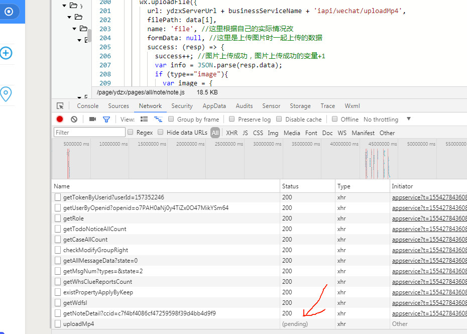 同样的问题,我上传的图片大小是8k,在微信小程序模拟器中可以上传,在苹果手机微信小程序就不可以,接口一直是pending