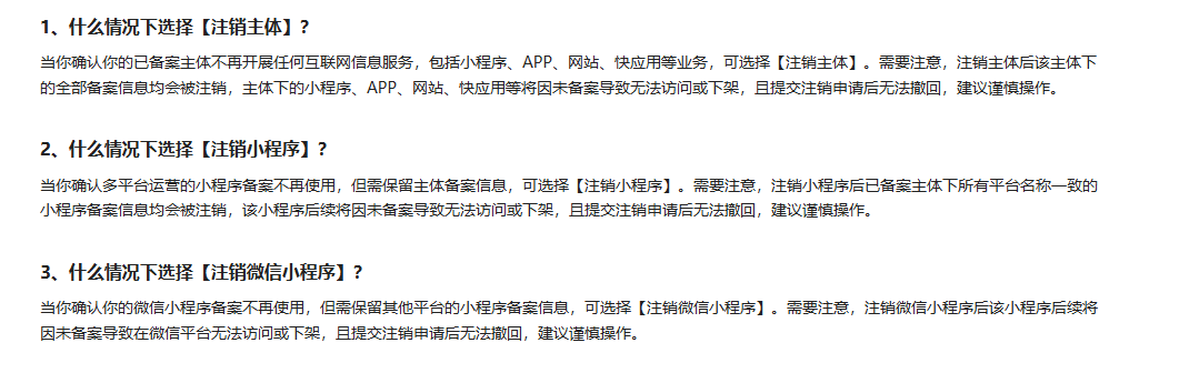 备案要先注销微信小程序、注销小程序、注销主体三个选项,这个不知道怎么选