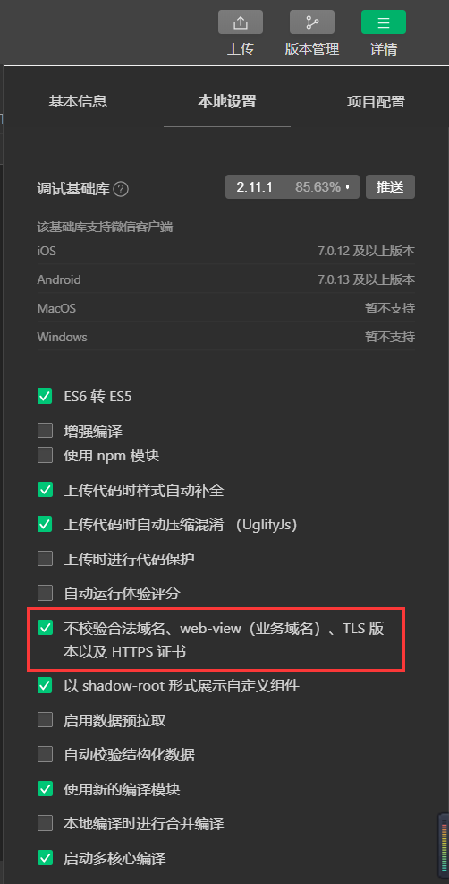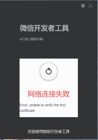 使用微信开发者工具,安装后打开,弹出“当前系统代理不是安全代理,是否信任”,不管选择“是”还是“否”,都会出来“网络连接失败”error:unable to verify the first certificate 的提示。已经重新卸载安装很多次了,还是不行。麻烦大家帮忙看看。
