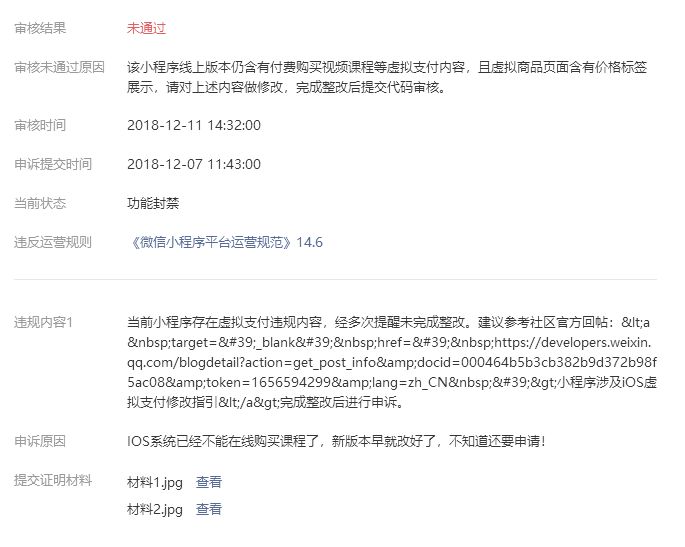 小程序内容中不可涉及虚拟产品支付、购买、购物车等带有付费性质的关键词,包括但不限于功能按钮、功能页面、支付提示及任何商品介绍等,请根据上述内容对小程序进行排查,完成整改后再提交申诉审核,申诉证据需以图片形式,提供到具体的正常支付业务逻辑,否则不予以申诉通过。