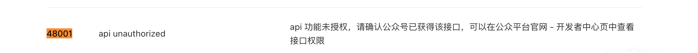 返回的结果:{"errcode":48001,"errmsg":"api unauthorized rid: 694cb04f-720db527-3b85f409"}
